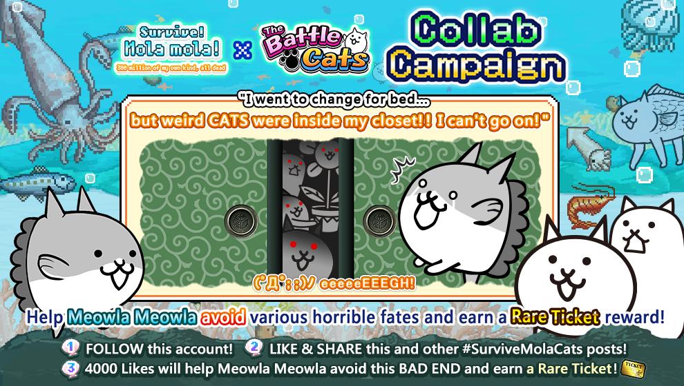 Ponos On Twitter Battlecats X Survivemolamola Collab Campaign Follow This Account And Like Meowlareturns Posts To Save Meowla From Each New Near Death Experience Each Milestone Unlocks Another Reward 1500 Likes Cat
